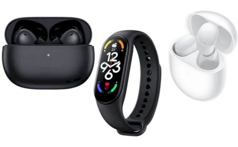 Gelang kebugaran Mi Band 7, bersama dengan TWS Redmi Buds 4 dan Redmi Buds 4 Pro.