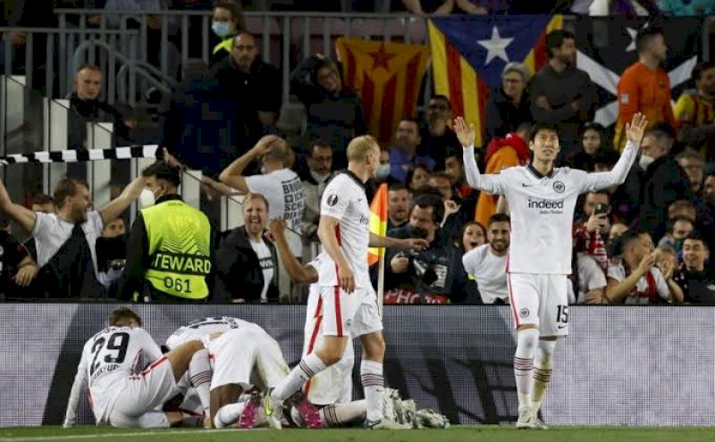 Dua gol tak mampu menyelamatkan Barcelona. Frankfurt berhak lolos ke semi final Liga Europa dengan keunggulan agregat 4-3.